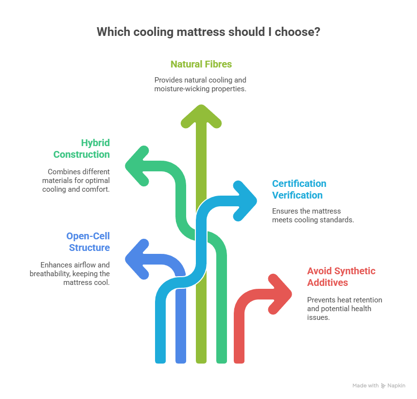 Research consistently shows that hybrid and latex mattresses outperform gel-infused memory foam in maintaining consistent temperature control throughout the night. The cooling you need for eight hours of sleep comes from materials and construction that promote continuous airflow, not from additives that quickly reach a comfortable temperature.