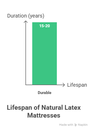 Natural latex mattresses typically last 15–20 years, making them among the most durable mattresses available. The material's resilient structure resists permanent indentations and maintains supportive properties throughout its lifespan.