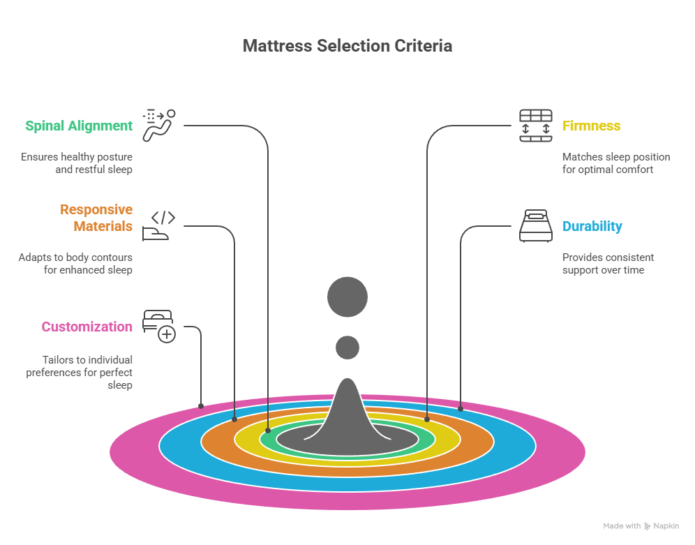 Your spine maintains natural curves—an inward curve in your lower back and outward curves in your upper back and neck. The ideal mattress keeps these curves supported while you sleep. When your spine stays properly aligned throughout the night, surrounding muscles can relax and recover.