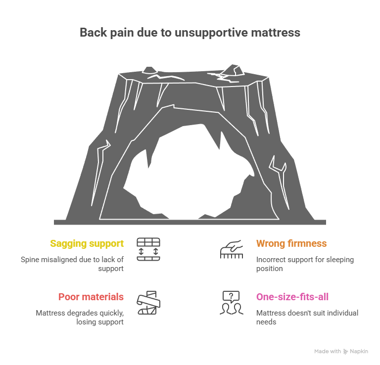 Neither extremely hard nor extremely soft mattresses are ideal for back pain relief. Hard mattresses create pressure points and gaps that leave your spine unsupported, while soft mattresses allow excessive sinking that misaligns your spine. Medium-firm mattresses strike the optimal balance between support and pressure relief, with just enough cushioning.