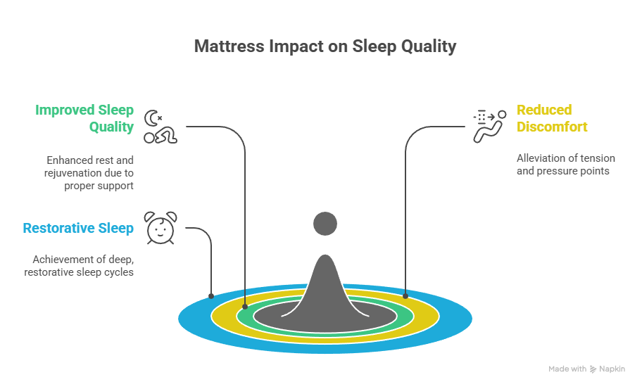 Poor mattress support creates a cycle of pain and poor sleep quality. When your mattress can’t properly support your hips and spine across its support layers, you spend the night unconsciously shifting positions, disrupting your sleep cycles and preventing the deep rest your body needs for healing.