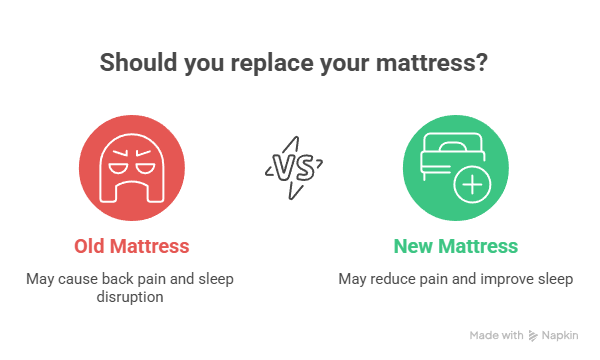 Earlier studies indicate that as mattress age increases, pain severity may also rise. The longer participants used the same mattress, the more back pain they reported, disrupting sleep. If your mattress is more than 7–10 years old and you're struggling with enough sleep, that's worth considering. A natural latex mattress topper can add immediate pressure relief to an aging sleep surface, while our guide on how long a mattress should last covers when it's time for a full replacement.