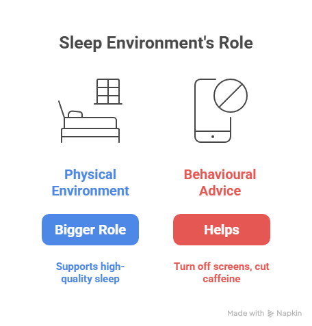 Most sleep medicine advice focuses on behaviour—turn off screens, cut caffeine, stick to a schedule. All of that helps. But your physical sleep environment plays a bigger role in sleep health than most people realize, and it can either support high-quality sleep or undermine it.