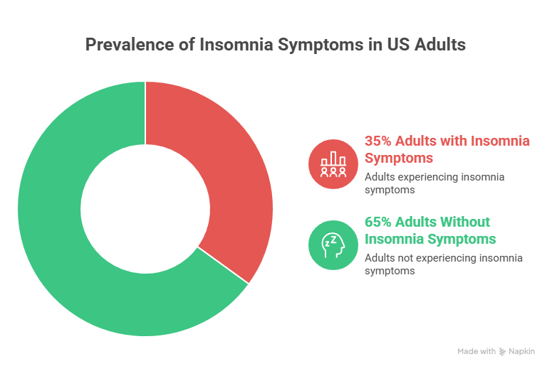 Even if not clinically diagnosed, 30–40% of Americans report symptoms consistent with insomnia at some point annually. Self-reported sleep problems far outpace official diagnoses.