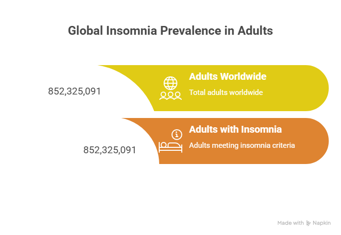A 2025 meta-analysis in Sleep Medicine Reviews estimated that 852,325,091 adults worldwide meet criteria for insomnia, representing a global prevalence of 16.2%. Of those, approximately 415 million have severe insomnia. That's more than the entire population of the United States.