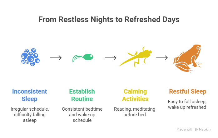 A predictable sleep routine signals to your body clock that it's time to wind down. This includes dimming the lights an hour before bed, keeping a consistent schedule, and removing stimulants from your evening routine. Building a sleep routine doesn't require dramatic changes—small, consistent habits compound into better sleep over time.