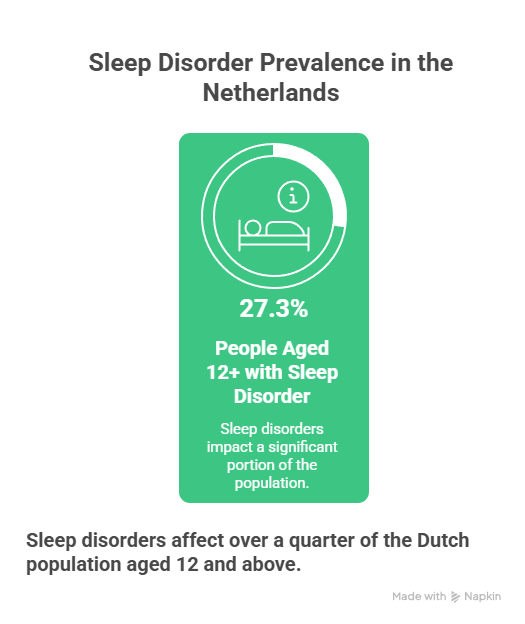 Country-level data shows meaningful variation in prevalence. 27.3% of Dutch residents aged 12 and over have a clinically defined sleep disorder (Healthcare, 2018). Sleep disorders affect industrialized nations across the board—not just the US.