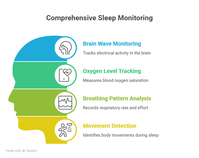 A polysomnography sleep study—which monitors brain waves, oxygen levels, breathing, and movement during sleep—is the definitive diagnostic tool for OSA and other sleep-stage disorders. In-home testing devices are increasingly accepted as an alternative for straightforward OSA cases.
